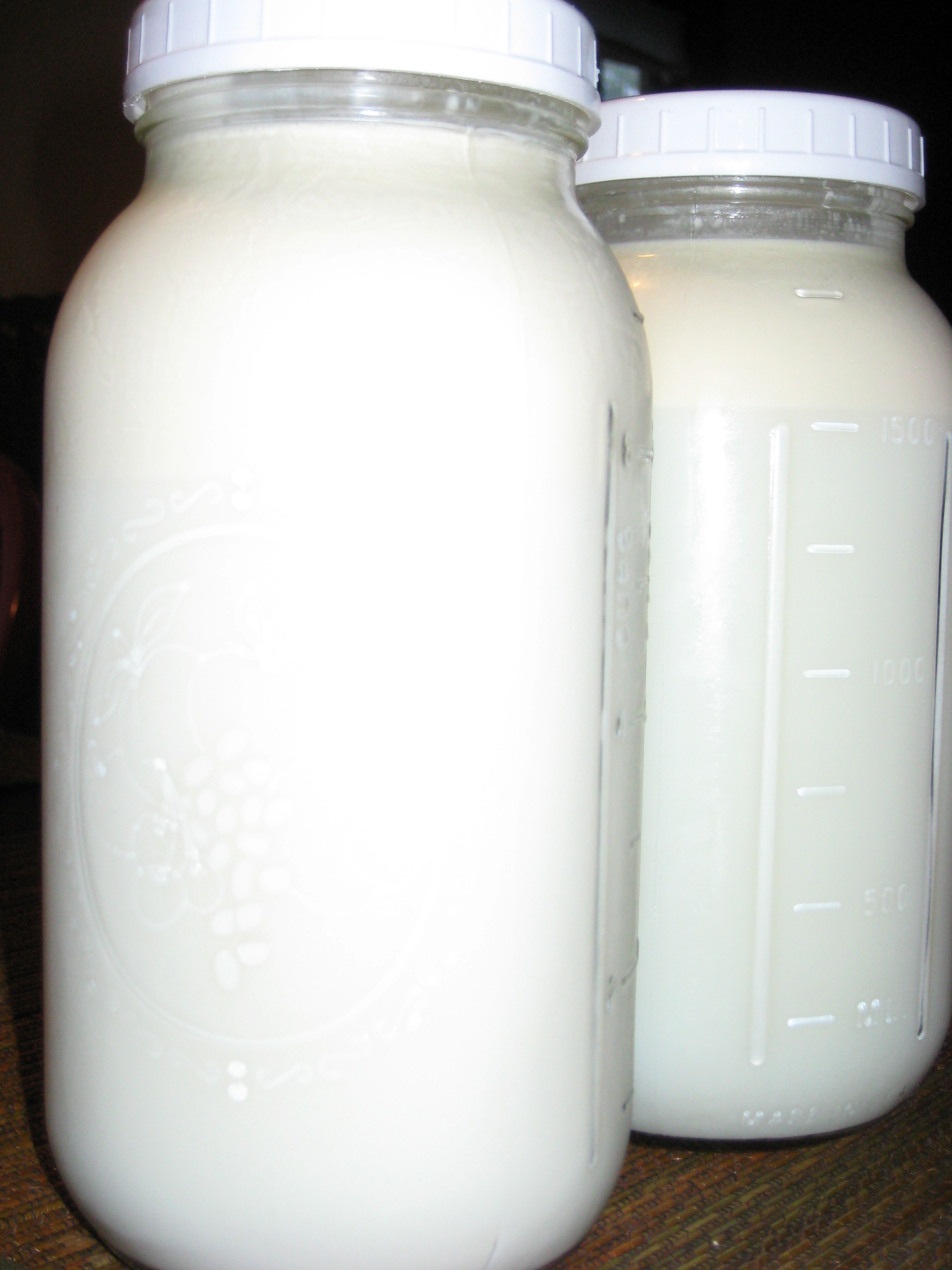 Dave and I have been getting some raw milk. Direct from farm, of course. It is illegal for farmers to sell raw milk off of the farm that produced it. It is also illegal to advertise it, so I think I have to be careful here. Can just writing about it on a blog constitute advertisement? I don’t know.  I might seem paranoid, but you’d be surprised by the swiftness, and harshness, of prosecution if rules regarding raw milk aren’t closely followed. I’m not going to go into the trials and tribulations of the real dairy farmer right now, since it’s a topic that I am still researching. What I am going to do is write a little about how much raw milk rocks.
